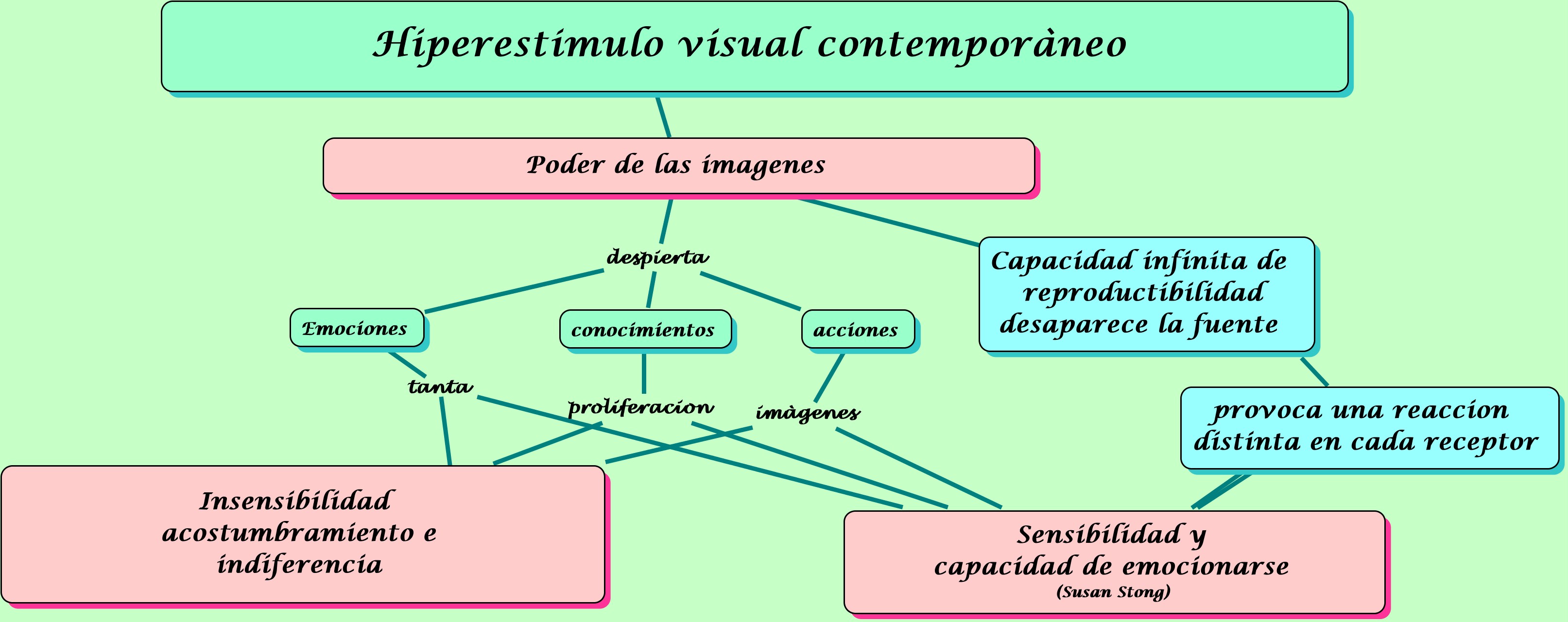 “Imágenes y palabras”, “Imágenes y realidad” y “No hay miradas inocentes y puras”, “La relación entre ver y saber”, “Acerca del hiperestímulo visual” – “El poder de las imágenes”, “Imágenes y estereotipos – Imágenes y transmisión”.